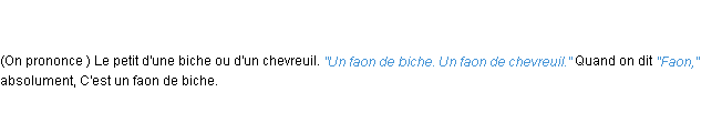 Ancienne signification développée en 1798 par l’académie Française (ACAD - 1798).Merci à Amaury et Andrée pour la numérisation du mot faon.