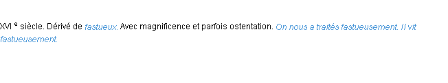 Définition du mot « fastueusement » par Emile Littré (édition de 1876).