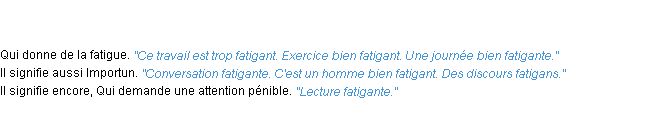 Définition du mot « fatigant » par l’Académie Française (édition de 1932).