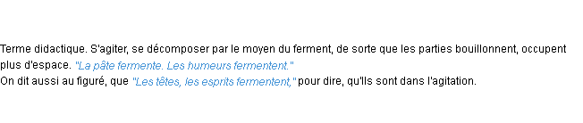 Définition de l’Académie Française (édition de 1986) pour le mot « fermenter ».