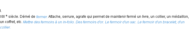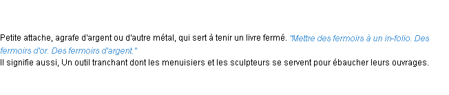 Définition du mot « fermoir » par l’Académie Française (édition de 1932).