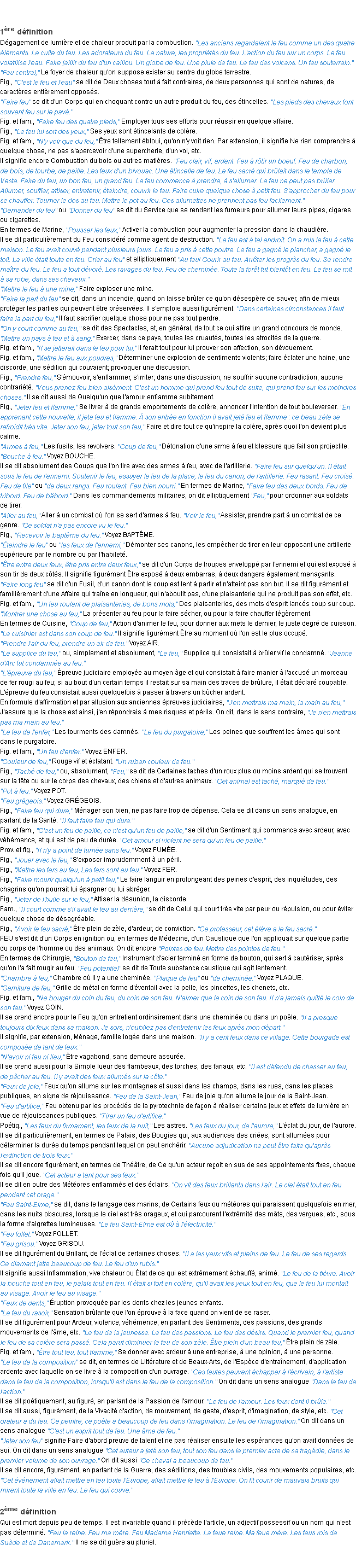 Signification éditée en 1932 pour le terme « feu » par l’Académie Française.