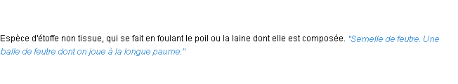 Ancienne signification du terme « feutre », parution de 1798, dictionnaire académique Français.Merci à Josèphe et Arnaud pour la numérisation du mot feutre.