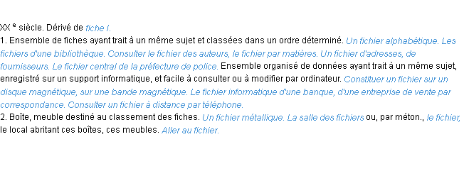 Définition du mot « fichier » (source wiktionary 2011).