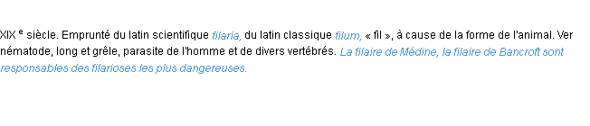 Définition du mot « filaire » (source wiktionary 2011).Merci à Célestine et Sylvestre pour la numérisation du mot filaire.