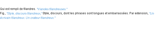 Signification du terme « filandreux », parution de 1932, dictionnaire académique Français.