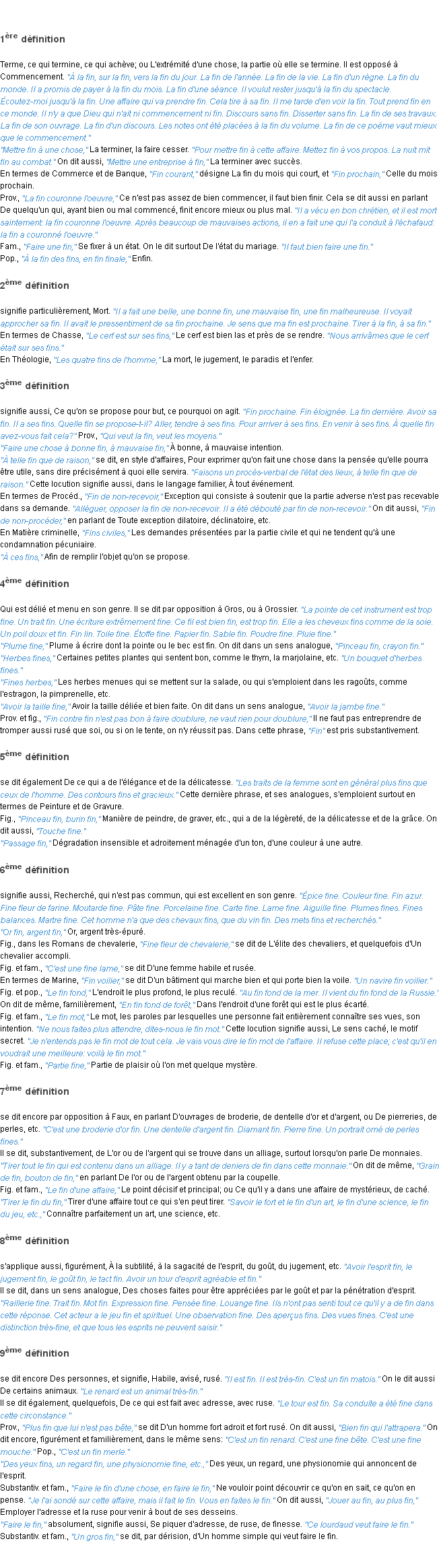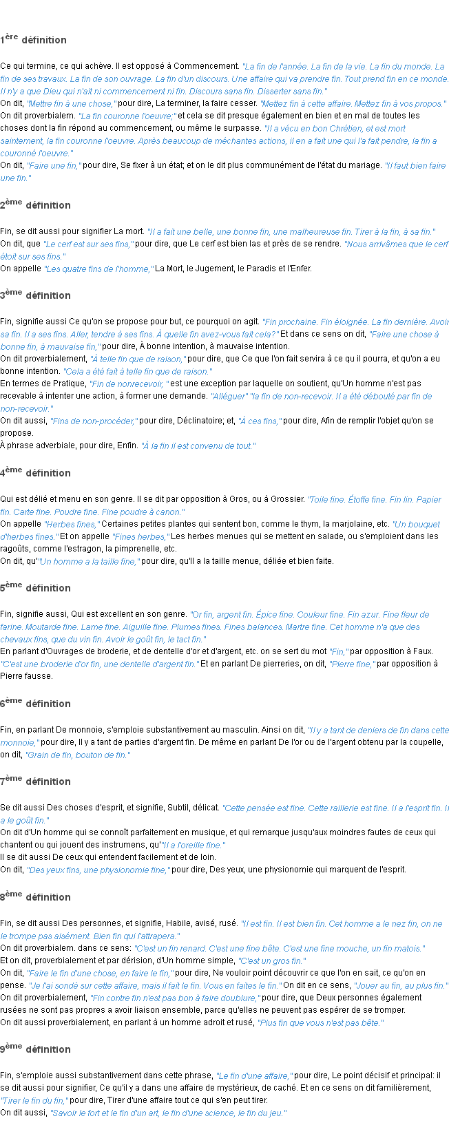 Définition académique pour le terme « fin » (parue en 1932).