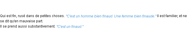 Ancienne signification du terme « finaud », parution de 1835, dictionnaire académique Français.