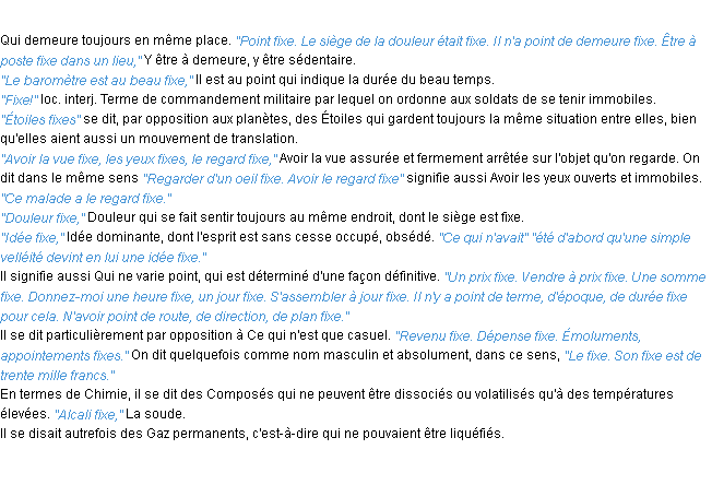Ancienne signification éditée en 1835 pour le terme « fixe » par l’Académie Française.