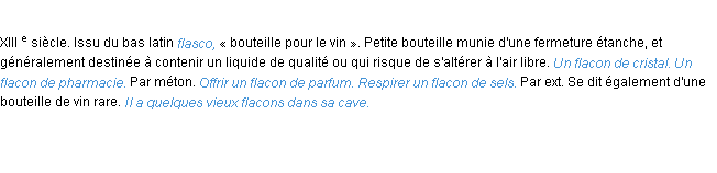 Ancienne signification éditée en 1835 pour le terme « flacon » par l’Académie Française.