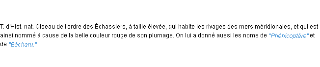 Définition de « flamant » issue du Littré (Auteur Emile Littré, édité en 1876).Merci à Céline et Charlot pour la numérisation du mot flamant.