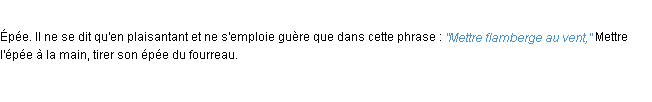 Définition de « flamberge » de source académique (Académie Française, parution de 1986).