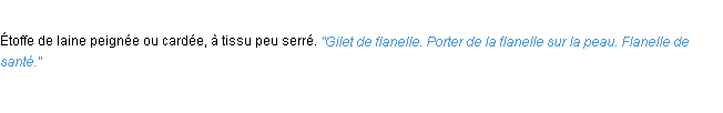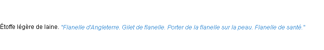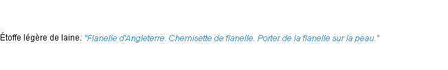 Ancienne signification éditée par l’Académie Française, année 1798.Merci à Fifi et Sébastien pour la numérisation du mot flanelle.
