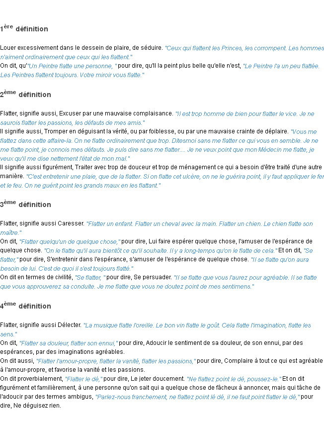 Ancienne définition académique pour le terme « flatter » (parue en 1835).