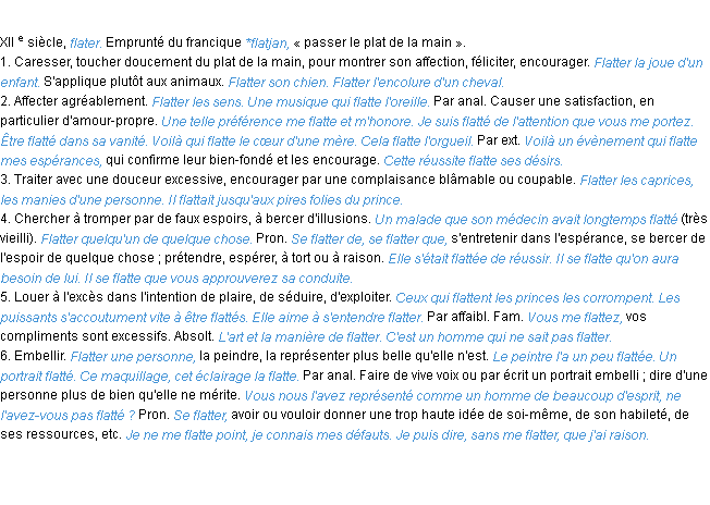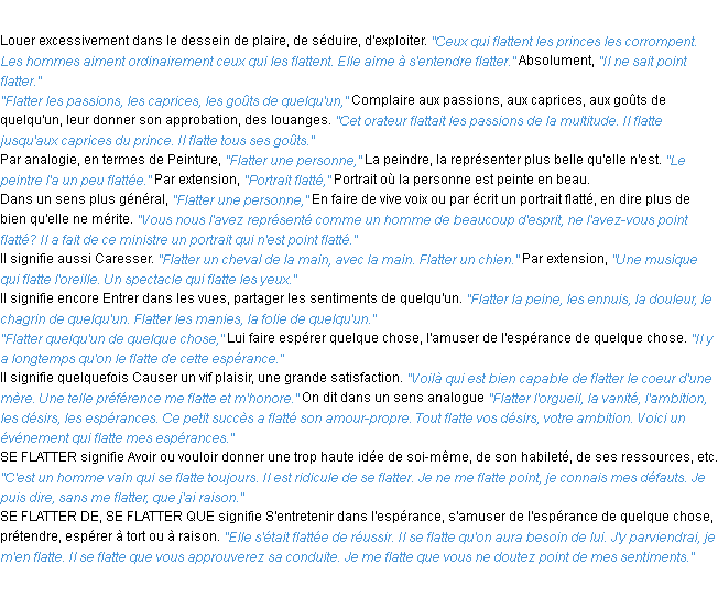 Signification éditée en 1932 pour le terme « flatter » par l’Académie Française.