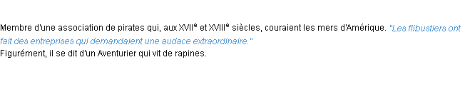Ancienne définition académique pour le terme « flibustier » (parue en 1835).