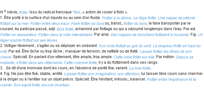 Signification du terme « flotter », parution de 1932, dictionnaire académique Français.
