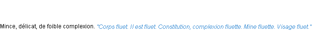 Ancienne définition académique pour le terme « fluet » (parue en 1835).