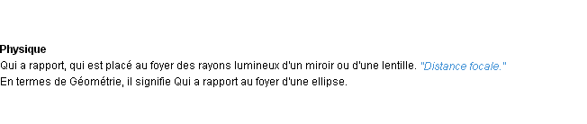 Définition « focal » du dictionnaire académique Français, parution de l’année 1986.