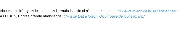 Signification du terme « foison », parution de 1986, dictionnaire académique Français.