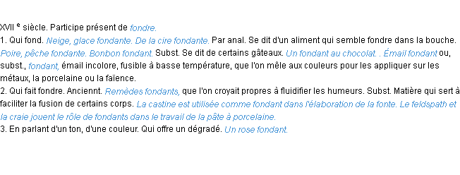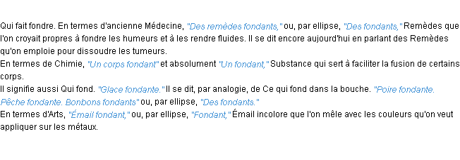 Ancienne signification issue du dico de l’Académie Française, parue en 1798.Merci à Gratien et édith pour la numérisation du mot fondant.