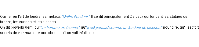 Ancienne signification éditée par l’Académie Française, année 1798.Merci à Félix et Renaud pour la numérisation du mot fondeur.