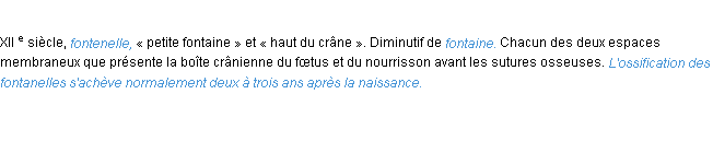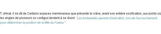 Définition du mot « fontanelle » par l’Académie Française (édition de 1986).