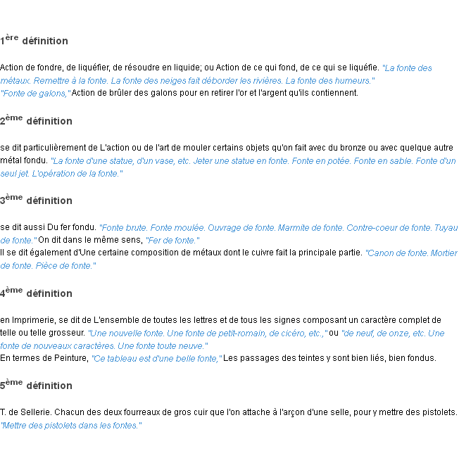 Ancienne définition du mot « fonte » par l’Académie Française (édition de 1835).