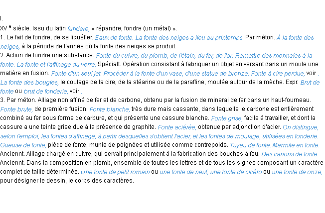Signification éditée en 1986 pour le terme « fonte » par l’Académie Française.