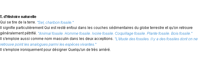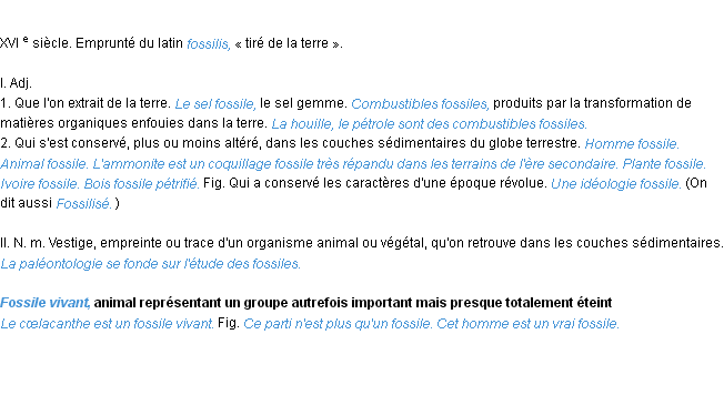 Signification éditée en 1986 pour le terme « fossile » par l’Académie Française.