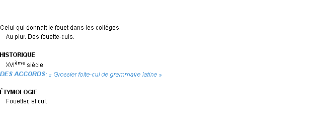 Définition de « fouette-cul » issue du Littré (Auteur Emile Littré, édité en 1876).Merci à Grégoire et Aurore pour la numérisation du mot fouette-cul.