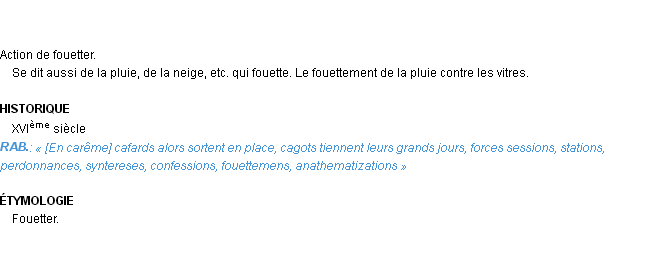 Signification éditée en 1876 pour le terme « fouettement » par Emile Littré.