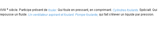 Ancienne signification du terme « foulant », parution de 1835, dictionnaire académique Français.
