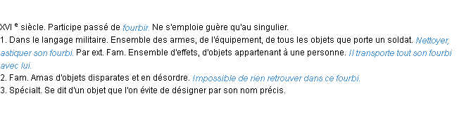 Définition du mot « fourbi » (source wiktionary 2011).