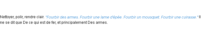 Définition de « fourbir » de source académique (Académie Française, parution de 1932).