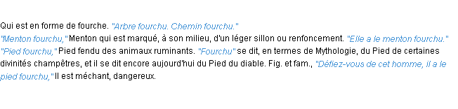 Définition de l’Académie Française (édition de 1986) pour le mot « fourchu ».