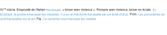 Ancienne signification éditée par l’Académie Française, année 1798.Merci à Mignon et Félix pour la numérisation du mot fracasser.