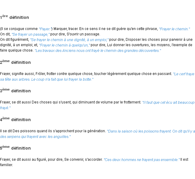 Ancienne signification éditée en 1835 pour le terme « frayer » par l’Académie Française.