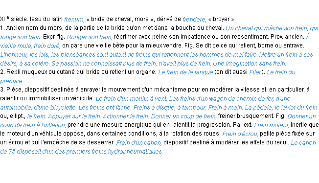 Ancienne définition du mot « frein » par l’Académie Française (édition de 1835).