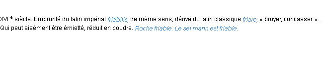 Ancienne définition académique pour le terme « friable » (parue en 1835).