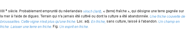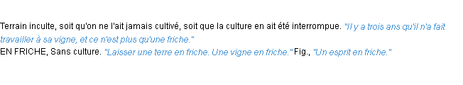 Signification du terme « friche », parution de 1932, dictionnaire académique Français.