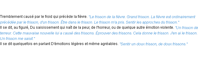 Ancienne définition de « frisson » de source académique (Académie Française, parution de 1798).Merci à Andrée et Sylvie pour la numérisation du mot frisson.