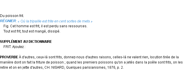 Ancienne définition de « frit » de source académique (Académie Française, parution de 1798).