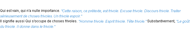 Ancienne signification éditée en 1835 pour le terme « frivole » par l’Académie Française.