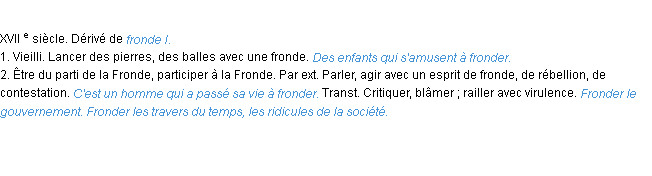Ancienne signification issue du dico de l’Académie Française, parue en 1798.Merci à Mélanie et Frédérique pour la numérisation du mot fronder.