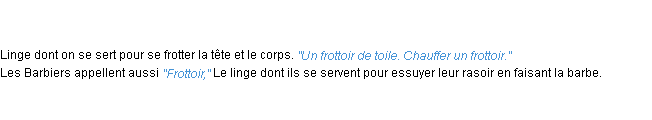 Définition de « frottoir » issue du Littré (Auteur Emile Littré, édité en 1876).