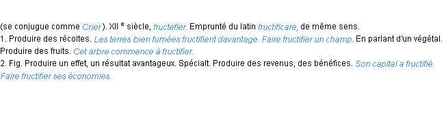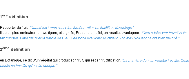 Ancienne définition développée dans dictionnaire académique, 1798.Merci à Corinne et élodie pour la numérisation du mot fructifier.