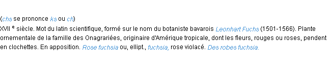 Définition de « fuchsia » issue du Littré (Auteur Emile Littré, édité en 1876).