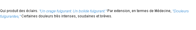 Définition académique pour le terme « fulgurant » (parue en 1932).