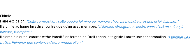 Définition académique pour le terme « fulminer » (parue en 1986).